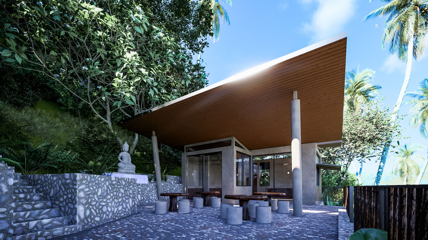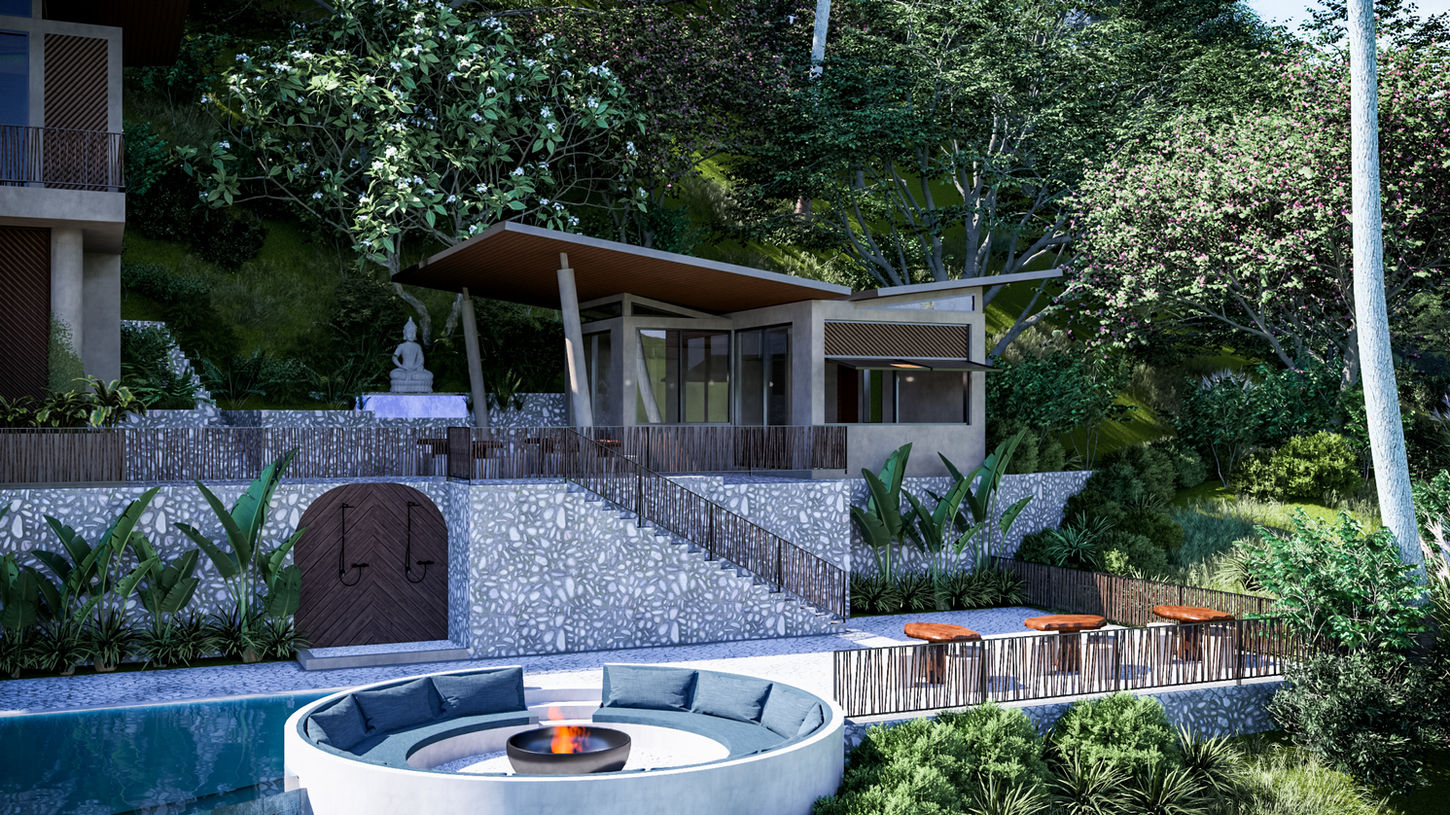 A network of trails leads guests through the landscape to concrete and bamboo clad cottages with generous glazing to frame the mountainous views. Each cottage has an open-air shower and a spacious balcony. There are quiet meditation spots spread throughout the development, and an elevated yoga deck overlooking expansive views.