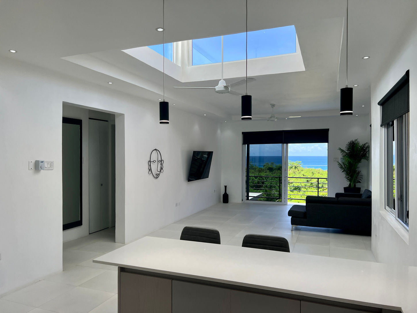One of our development projects is The Indianna, a three-bedroom luxury residence designed for seamless indoor-outdoor living. With just under 2,000 square feet of split-level interior space, the villa embraces the sloped lot it is set upon, overlooking an infinity pool with a tranquil water fountain feature.